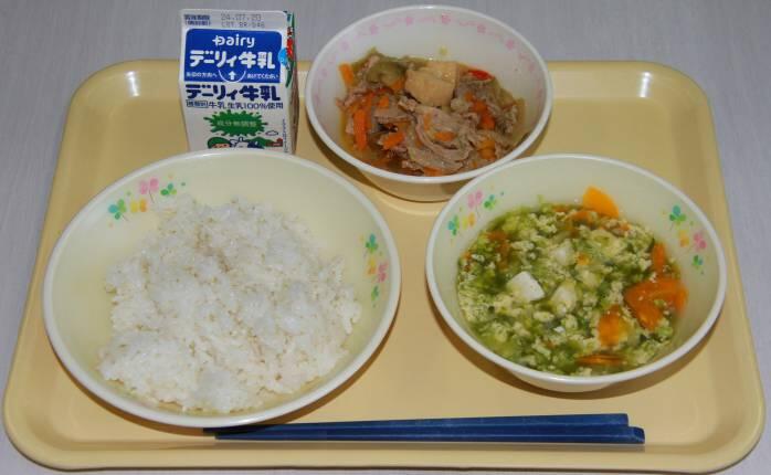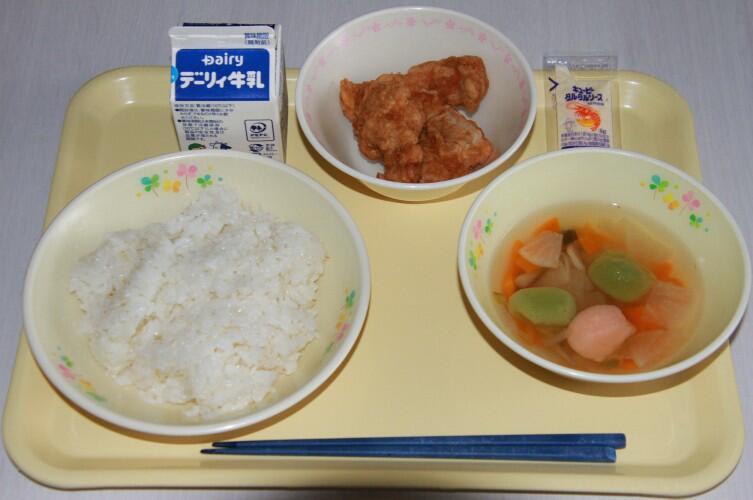 西諸っ子ご飯、カラフル野菜スープ、揚げたこ焼き