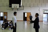 火災を想定しての避難訓練を行いました。須木分遣所より3名の署員の方に来校