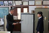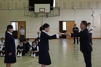 続いて、新生徒会役員の紹介の後、任命証の授与。