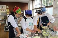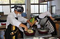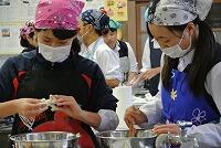 5・6校時に1年生は、家庭科の調理実習を行いました。