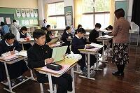 1年生(英語)、2年生(社会)の参観授業では、子どもたちが、一生懸命に