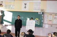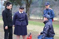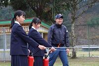 2年生の小牧くんが、「今日は丁寧に消火器の取扱いについての指導をしていただき、ありがとうございました。これから火災の多い時期になりますが、火事を起こさないように安全に生活していきたいと思います。」と、感想を交えてお礼の言葉述べてくれました。須木分遣所の皆様、ご指導ありがとうございました。