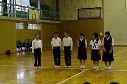 次に、さきほど行いました第1回須木るアップ学力コンテスト(国語)で、最優秀賞(満点)をとった5人の生徒の表彰を行いました。みんな、よく頑張っていたと思います。来月の2回目(社会)でもさらに頑張ってほしいと思います。
