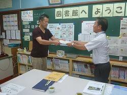 県大会出場を決めた主将の西岡くんから表彰状の校納がありました。