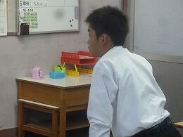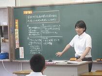 東原先生は、現在、鹿児島国際大学福祉社会学部の4年生。教科は社会科、また、特別支援教育も勉強中です。教職員を目指して頑張っています。