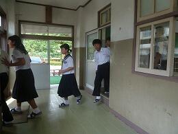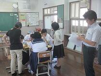 小学生は、中学校へ登校。1校時から3校時までの練習。