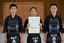 最初に、先日の地区中学校総合体育大会剣道競技において男子団体2位に入り