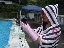 団決定についての説明の後、ゲーム(玉入れ)。ゲームに勝ったB団からペットボトルを振り、団の色が決定しました。