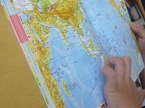 3校時、1年社会科の授業。「乾燥した土地に暮らす人々の生活と環境」について
