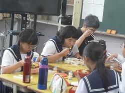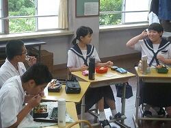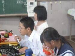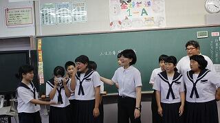 給食時間に、全校生徒へのあいさつも行ってもらいました。そして、帰りの会では所属した1年生教室で、最後のお別れ。