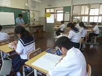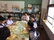 日頃お世話になっている学校運営協議会、社会福祉協議会須木支所より3名の方に来校いただき、参観授業、そして、給食を生徒職員と一緒に食べていただきました。