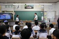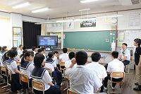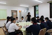 子どもたちに学校の特色や魅力、また、中学校で身に付けておくべきことなど、たいへんくわしく説明をしていただきました。