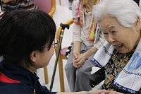 そして、翌6日(金)は、校区内にある「美穂の里」に出向いて、施設にいらっしゃる高齢者の方がたとの交流を行いました。