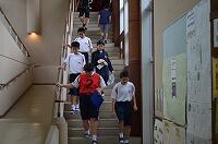 小学生は、朝から中学校の体育館に登校。健康観察、朝の会等を終わらせ、