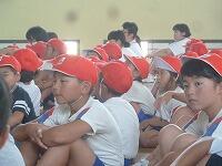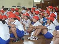 今日は、5校時に須木小学校体育館で、合同運動会に向けての結団式が