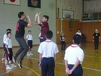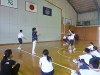 3校時は、全校生を対象に、ゲームやジェスチャー的な長縄跳び体験、また、グループに分かれての季節を想像した表現。
