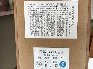 今朝の宮日こども新聞の「学園詩壇に」1年黒木里海さんの詩が掲載