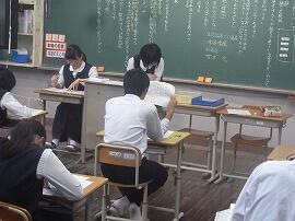 1年生の国語科の授業では、「古典」の単元で、子どもたちが、集中して「枕草子」の暗記していました。