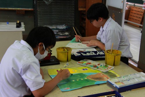 まだ3週間程ありますが、生徒会役員を中心に、生徒会室では、当日に使う飾りの準備が行われていました。
