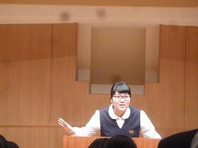 これから人生を歩んでいく子どもたちにとって、たいへん貴重な内容だったことと思います。最後に、生徒を代表して3年生の花牟紗弥さんがお礼の言葉を述べてくれました。