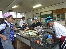5・6校時に1年生は家庭科の授業で調理実習を行いました。