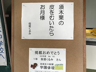 宮日こども新聞「学園俳壇」に1年生の假屋さんの作品が掲載されました。