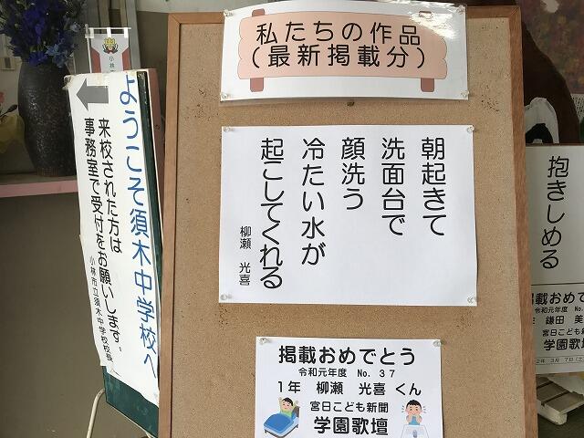 宮日こども新聞の「学園歌壇」コーナーに、1年 柳瀬光喜くんの短歌が