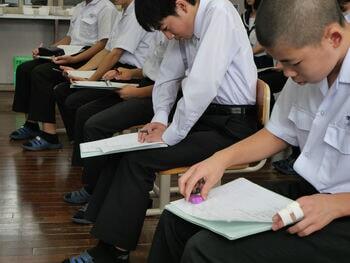 1校時の途中ですが、1年生は貼り付けを始めた生徒もいます。