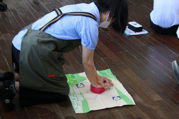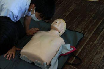 胸部圧迫の方法やAEDの使い方について、全員が実習を行いました。