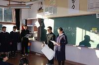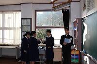 代表して、片地奏音さんが「中学校3年間で19回、ドリームジャンボ学園で講話を聞くことができたいへん良い経験になりました。須木中で本当によかった思います。」と、これまでを振り返っての感想を入れながら、お礼のあいさつを行ってくれました。