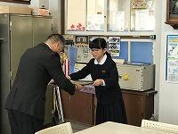 本日、小林地区更生保護女性会より3名の方が来校され、3年生に卒業記念品
