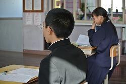 今日は、全学年テストを行っています。集中して問題に取り組んでいます。