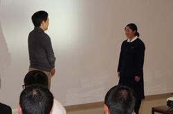 小林中央公民館で小林市「なかよし交流会」が開催され、3Bの西岡くんが英語弁論