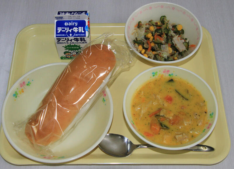 米粉パン、パンプキンシチュー、りっちゃんサラダ