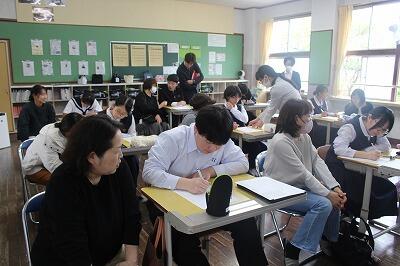 参観授業では、1年生の教科(英・数・国)、2年生の教科(社会)、3年生の学活(進路指導)が行われ、保護者の皆様にも多数ご参観いただきました。