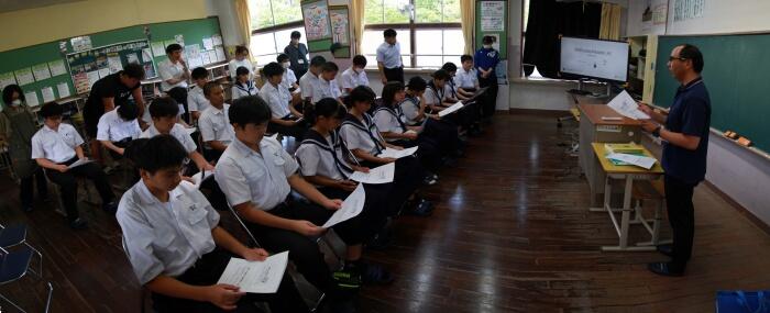 6時間目に、8月2日の暮らしの困りごと助け隊(地域の方に対する中学生が行うボランティア活動)に向けての講習が行われました。