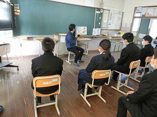 どちらの絵本も、ユーモアと空想にあふれた内容で、生徒たちは、須木図書館職員の読み聞かせに真剣に聞き入っていました。