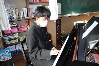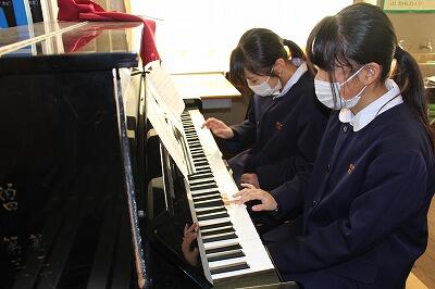 授業をのぞいてみると、1年生はストーブを付けた音楽室で器楽の練習。合奏になるのが楽しみです。
