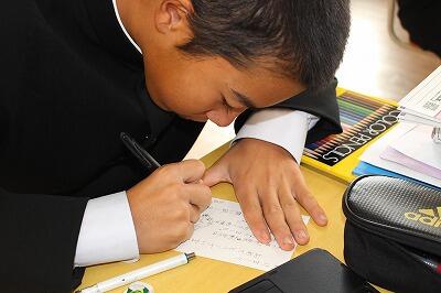 2年生は技術の授業。真剣にワークのまとめをしていました。