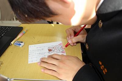 3年生は国語の書写「年賀状を書こう」。葉書の正しい書き方を学んでいました。
