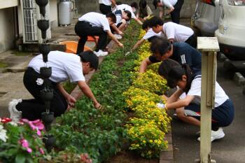 今日の清掃時間は天気も回復し、予定通り花いっぱい運動を行うことができました。
