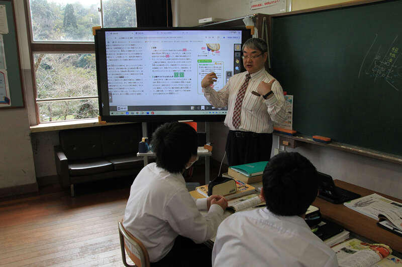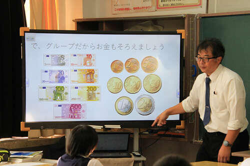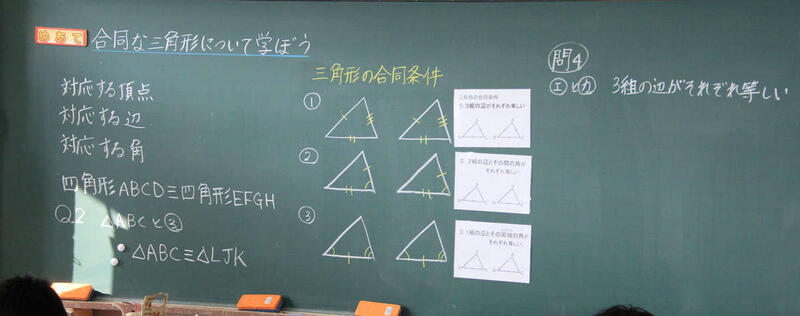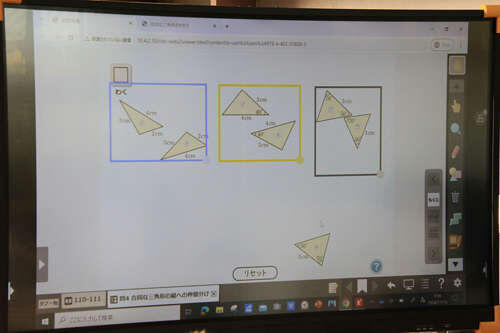 デジタル教科書を使って、図形をグループ分けしています。
