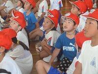今日は、5校時に須木小学校体育館で、合同運動会に向けての結団式が
