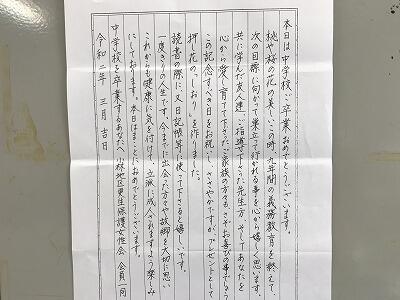 約1時間の式でしたが、いつもと同じ式次第で進んでいきました。在校生代表の