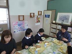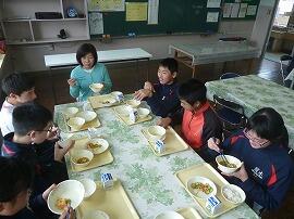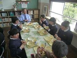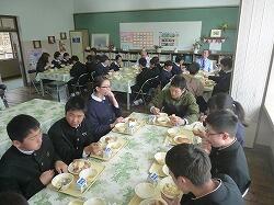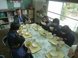 ランチルームでの全校一斉の給食。おいしさもいつも以上です。