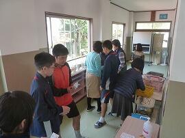そして、校内では午後、身体計測を実施しました。昼休みに委員会の生徒が身体計測で使う器具を体育館に運んでくれました。