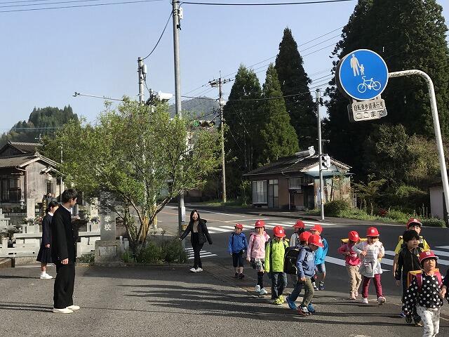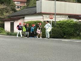 地区体育館目の交差点では、須木庁舎の方が見守り活動をされています。