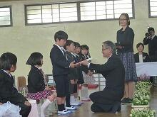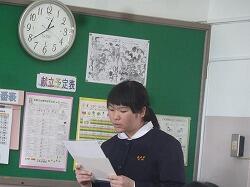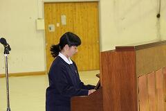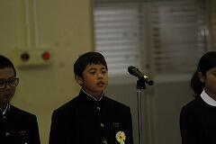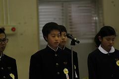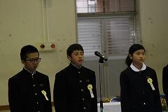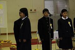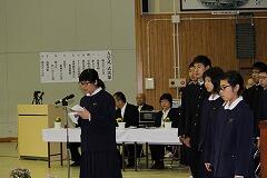 本校では、一人一人が誓いのことばを述べます。どの子どもの発表も心のこもった、これから始まる中学校生活への意欲が感じられました。