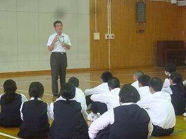 講話では、「先ず、近くに近寄らない」「迅速に先生や周りの大人に知らせる」等、大切な点を分かりやすく話していただきました。