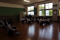 刃物をもった不審者が教室に侵入するという設定での訓練。